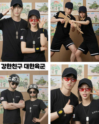 코스프레반티 육해공 로카티 라운드 반팔 백색 검정(왼가슴 로카/오른팔 태극기/등판 코리아 아미 인쇄포함)